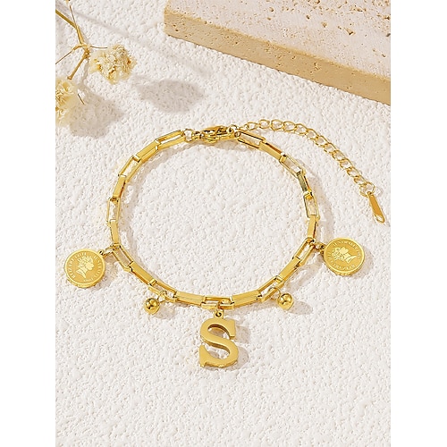 Bracciale da donna placcato in oro con lettere dell'alfabeto, ciondoli a forma di moneta e pallina, catena regolabile, elegante regalo di Natale per lei, accessorio di gioielleria personalizzato