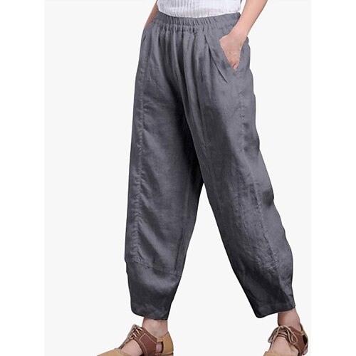 Per donna Sfacciato Pantaloni in cotone e lino Chino Di tendenza Streetwear Essenziale Alla caviglia Vita normale Liscio Tasche Cinturino elastico Comfort All'aperto Media elasticità Da mare Strada