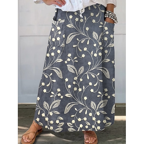 Per donna Gonna Casual Maxi Misura del girovita medio Gonne Floreale Floreale Inelastico Quotidiano Vacanza Blu Bianco Arancione Verde Estate Poliestere