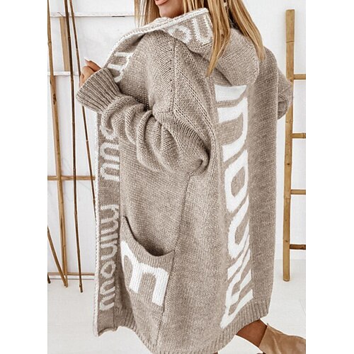 Per donna Felpa Cardigan Elegante Moda Streetwear Lettera Aperto davanti Tasca Lavorato a maglia Stampato Manica Lunga Top lunghi Maglia All'aperto Quotidiano Weekend Marrone Beige Primavera Autunno