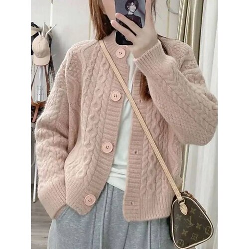 Per donna Felpa Cardigan Elegante Moda Streetwear Colore Puro Girocollo Bottoni Lavorato a maglia Manica Lunga Top Regolari Maglia All'aperto Quotidiano Weekend Rosa Verde Autunno Inverno