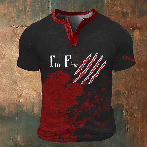 Per uomo Grafico Macchie di sangue Sto bene Maglietta Manica Corta maglietta Stampa 3D Henley Camicia Moda Athleisure Streetwear Sport all'Aperto Nero / Rosso Rosso Estate Primavera Abbigliamento S M