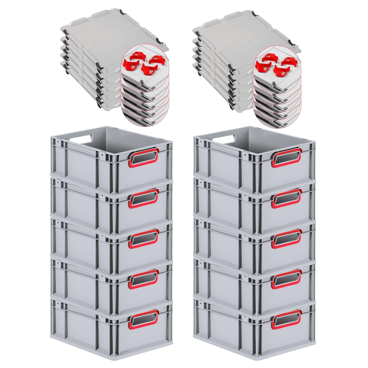 PROREGAL SuperSparSet 5x Eurobox NextGen Economy mit Scharnierdeckel & schwarzen Verschlüssen, Griffe zu, HxBxT 12x30x40cm, 11L, Eurobehälter, Box
