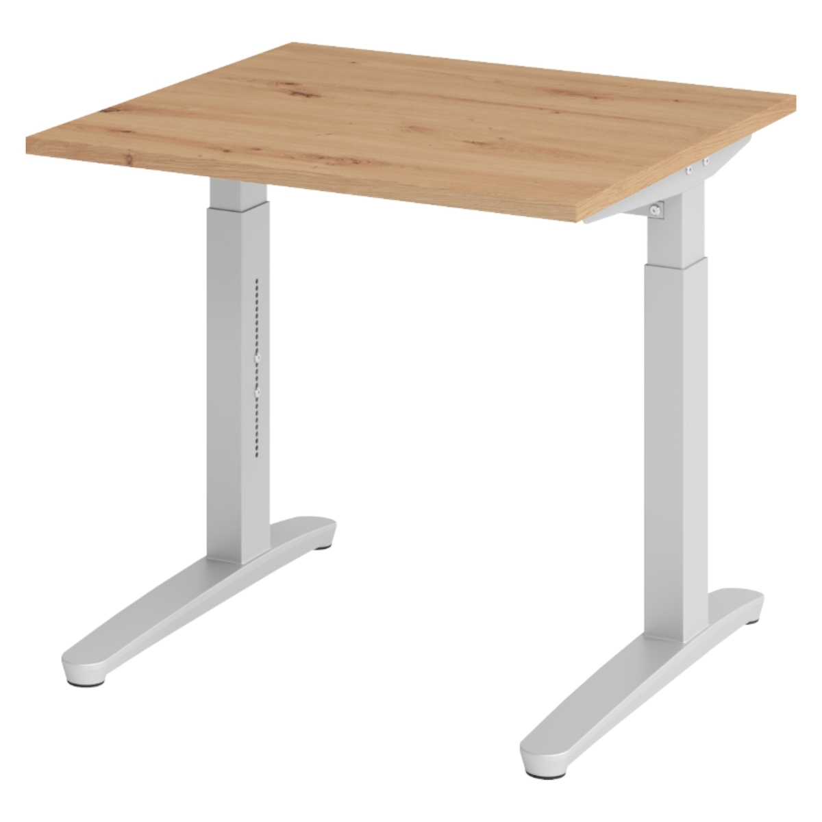 bümö manuell höhenverstellbarer Schreibtisch 80x80 in Asteiche, Gestell in silber - PC Tisch höhenverstellbar & klein, höhenverstellbarer Tisch Büro,