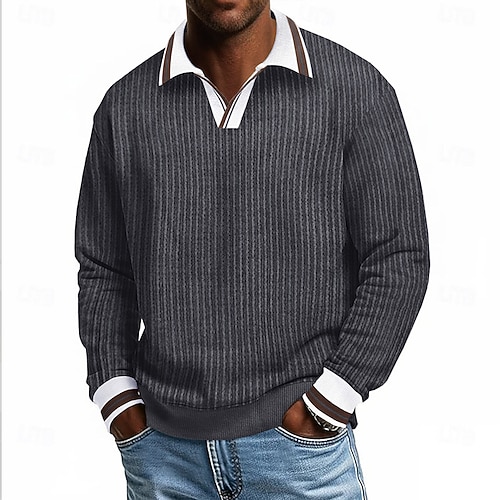 Per uomo POLO Polo in maglia Informale Per uscire Collo a polo Classico Manica lunga Abbigliamento sportivo Informale Tinta unica A strisce Pulsante frontale Simples Autunno inverno Taglia piccola