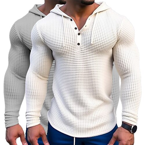 Per uomo Camicia a nido d'ape Maglietta Camicia a Maniche Lunghe Manica Lunga Con Cappuccio Primavera Autunno Tutte le stagioni Semplice Moda Designer Essenziale 2 Pezzi Bottoni Confezione multipla