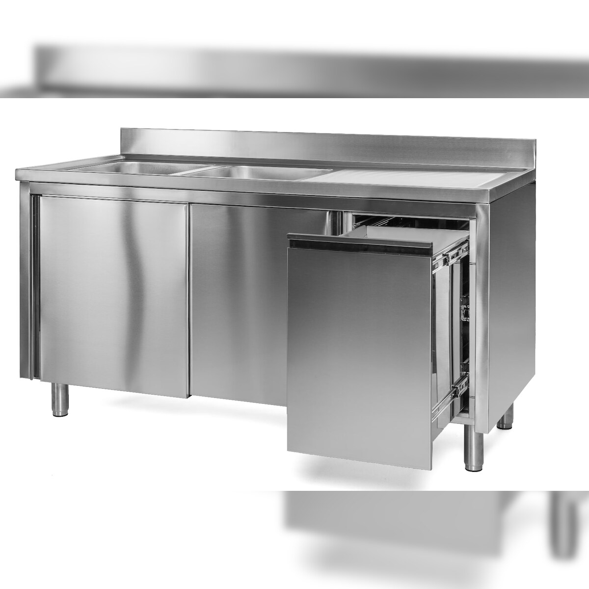 Spülschrank 2 Becken links 2000 x 600 x 850 mm Abfallbehälter rechts