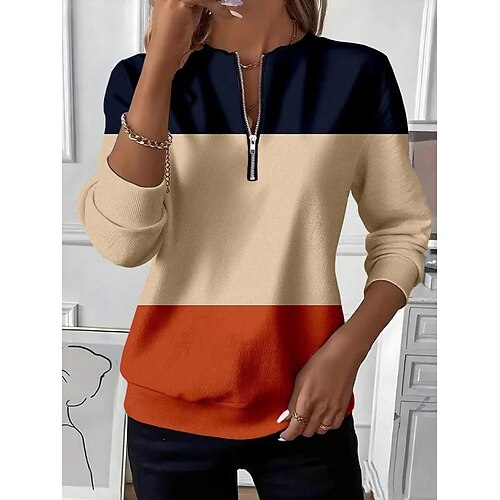 Per donna Felpa Pullover Felpe con cerniera Grafico Geometrico Blocco di colori Moda Casual Manica Lunga Girocollo Top Regolari Streetwear Abbigliamento Quotidiano Cerniera Stampato Arancione Marrone