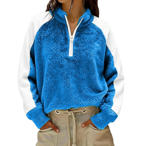 Per donna Felpa Pullover Felpe con cappuccio Blocco di colori Semplice Elegante Caldo Attivo Manica Lunga Mezza zip Top Regolari Lavoro Streetwear Abbigliamento Quotidiano Cerniera Verde primavera