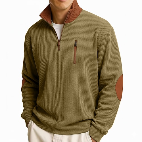 Per uomo Camicia di Velluto a Coste Maglietta Camicia a Maniche Lunghe Camicie da uomo con toppe sui gomiti Manica Lunga Con cerniera Estate Autunno Autunno Inverno Blocco di colori Quotidiano