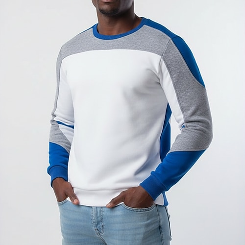 Per uomo Felpa con cappuccio Nero Bianco Blu marino Grigio Girocollo Blocco di colori Stampato Abbigliamento casual alla moda Uscire Urbana Streetwear Casual Primavera Inverno Abbigliamento Felpe con