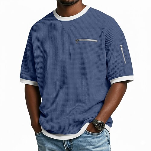 Per uomo Maglietta a Maglia Waffle Maglietta Manica Corta Girocollo Estate Primavera Tutte le stagioni Blocco di colori Testurizzato Moda Designer Casual Tasca con cerniera Casuale Quotidiano