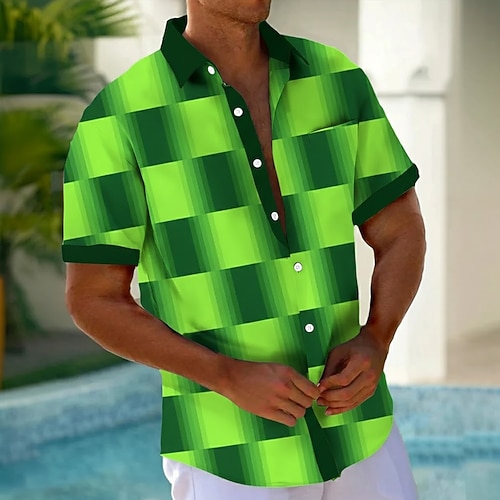 Per uomo Geometrico Blocco di colori Colore sfumato Camicia Camicia Estiva Camicia con Bottoni Manica Corta Moda Casual All'aperto Vacanza Abbigliamento Quotidiano Estate Primavera Collo ripiegato