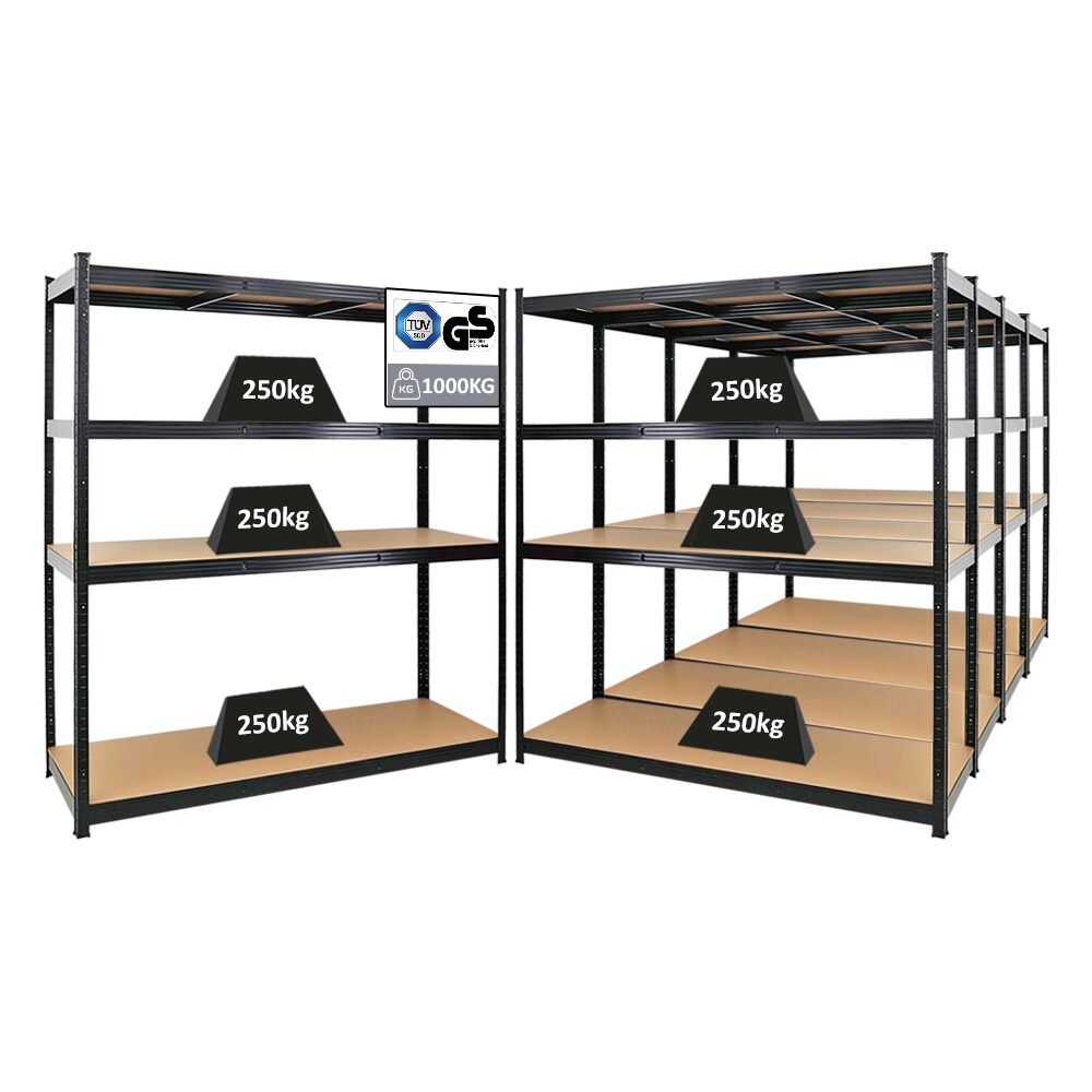 PROREGAL Mega Deal | 5x Schwerlastregal TAURUS XL | HxBxT 180x160x60cm | Fachlast 250kg | Schwarz | Stecksystem Lagerregal Regalsystem 5 Stk.