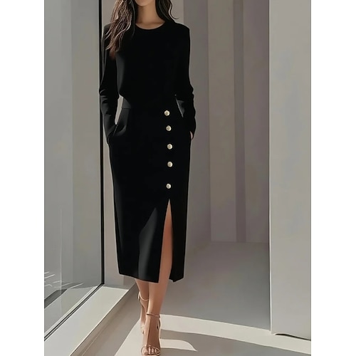 Per donna Abito Midi Abito aderente Abiti semi formali Ufficio Vestibilità regolare Semplice Manica Lunga Colletto a Camicia Nero Rosa Beige Grigio Primavera Autunno