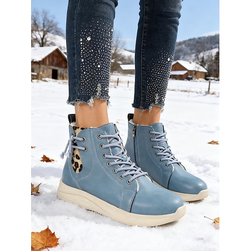stivaletti da donna alti in pelle marrone chiaro con stampa leopardata – stivaletti casual alla caviglia con lacci e cerniera laterale per camminare, viaggiare e street style