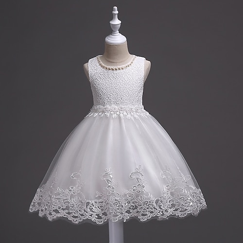 Abito da damigella d'onore bambina Da ragazza Vestito Vestito da festa Matrimonio Feste Occasioni speciali Da principessa Dolce Retato Con ricami Tinta unita Senza maniche Girocollo Bianco Rosa 4