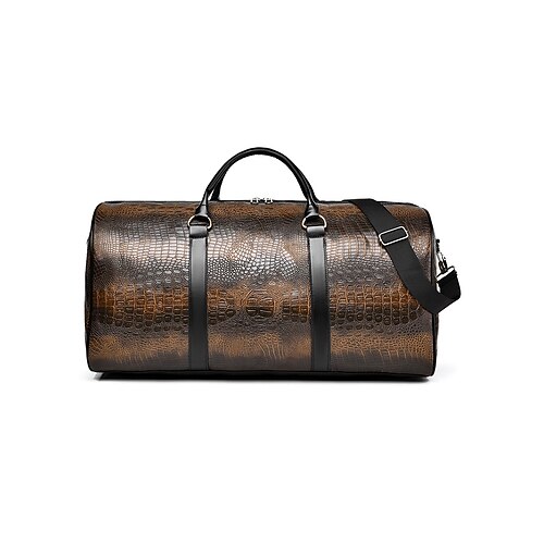 Borsa da weekend da uomo in similpelle con motivo coccodrillo, tracolla regolabile, grande capacità, impermeabile, perfetta per gite del fine settimana e brevi viaggi di lavoro