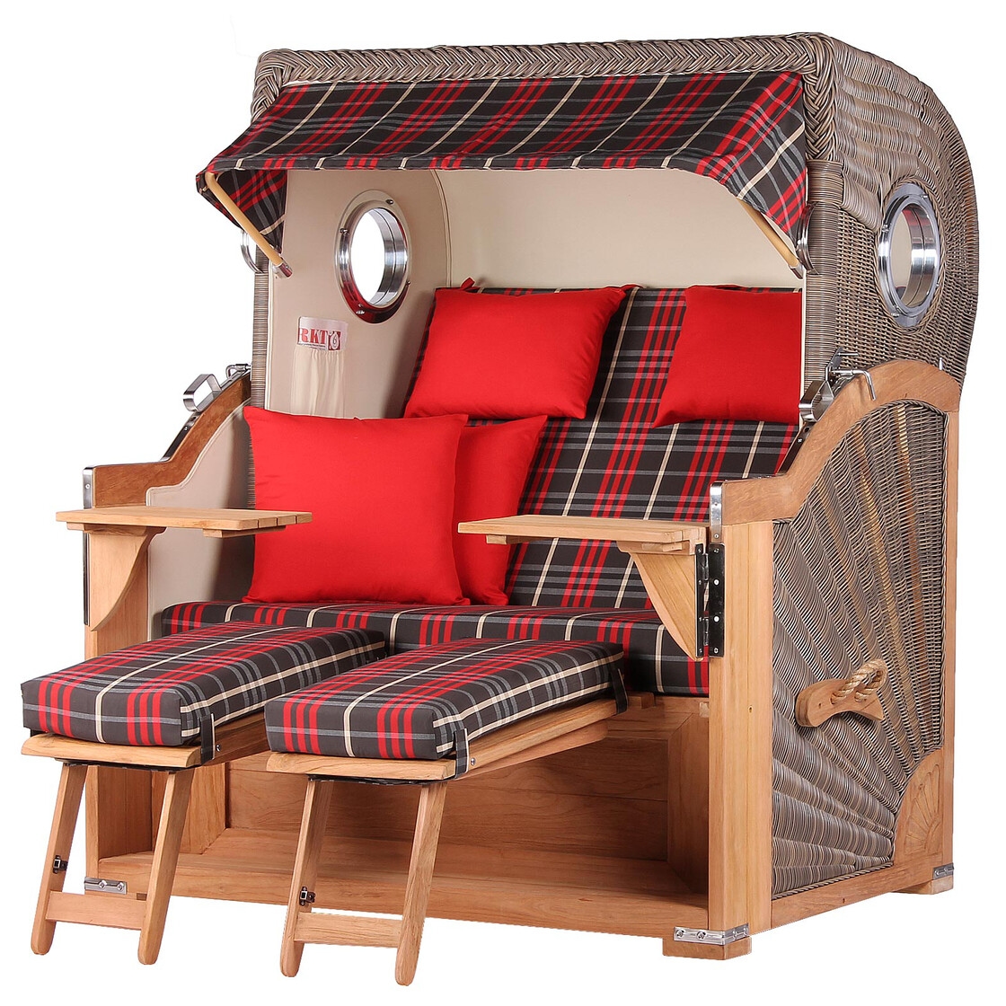 Mr. Deko Strandkorb Komplettset - bene living - Königssee Teak Bullauge - PE grau - Modell 529 - inkl. Liftersystem
