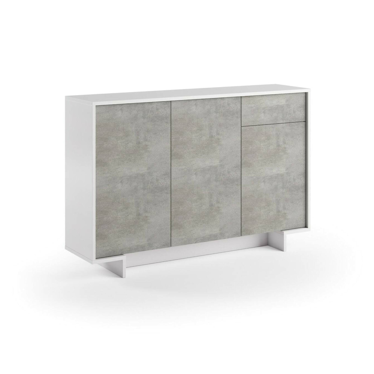 Dmora Sideboard Dbakayok, Wohnzimmer-Sideboard, Wohnzimmer-Buffet mit 3 Türen und 1 Schublade, 100 % Made in Italy, 134 x 35 x 87 cm, Weiß und Zement
