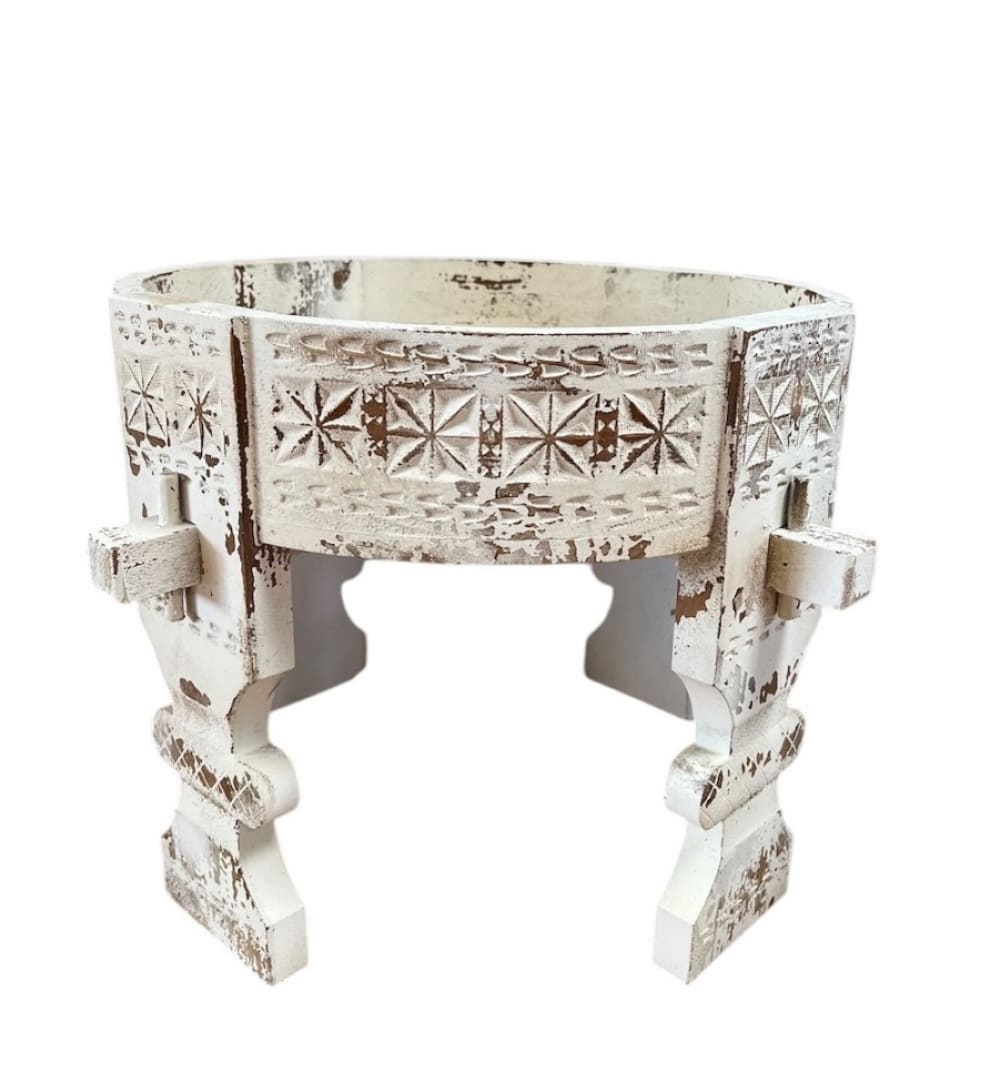 Tavolino rotondo in legno intagliato