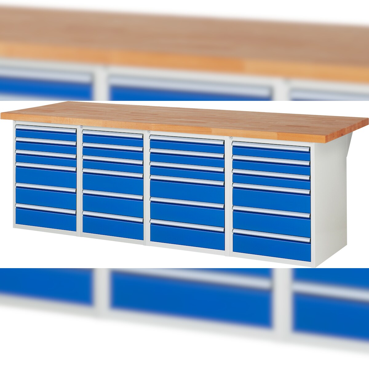 PROREGAL Werkbank Serie 7000 - Modell 7515 | HxBxT 89x250x90cm | 24x Schublade | Schubladenmaße 12x90 + 12x150mm | Lichtgrau | Arbeitstisch Werktisch