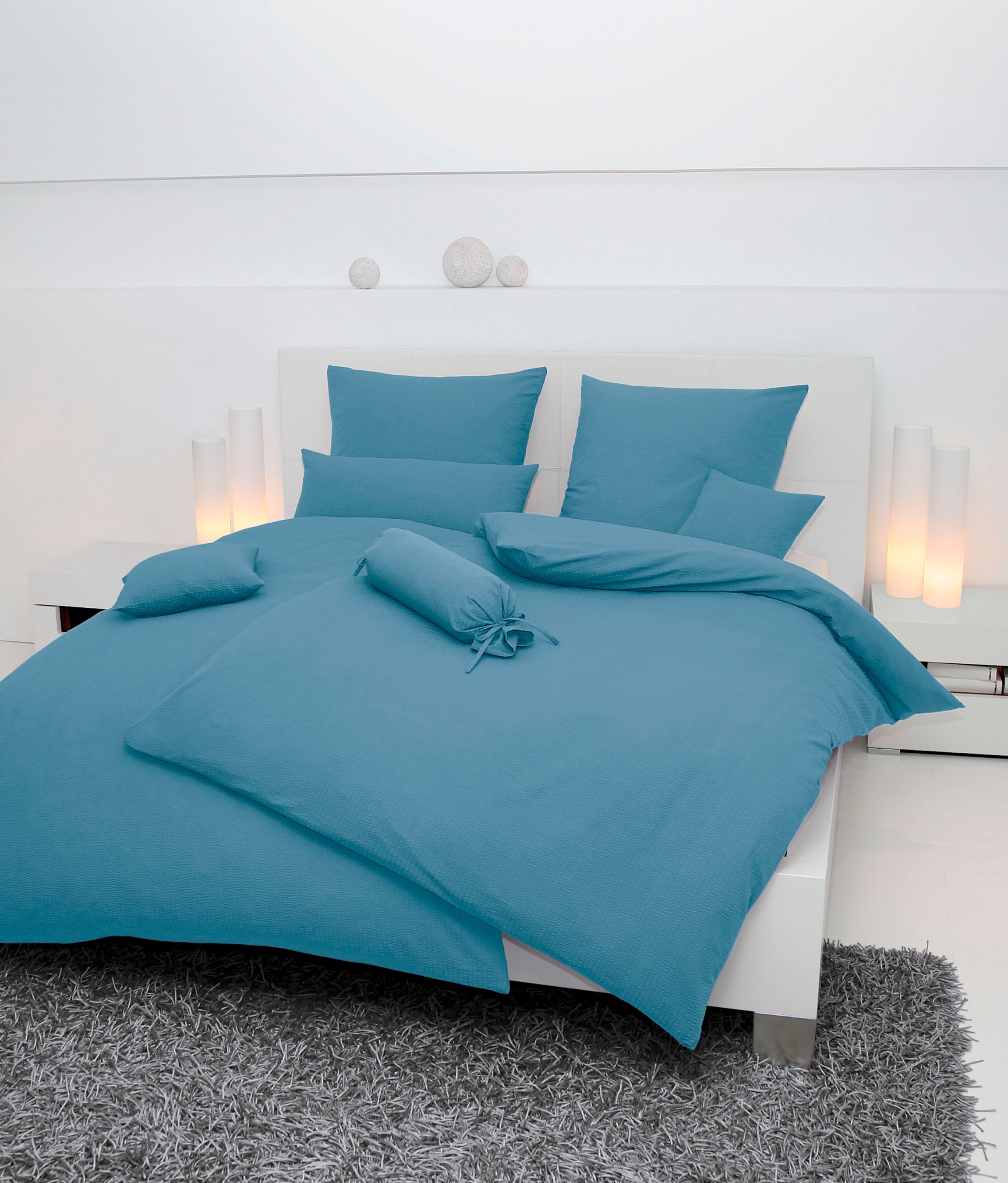Bettwäsche JANINE "PIANO 0125", blau (denimfarben), B/L: 155cm x 220cm, , Soft-Seersucker, B/L: 80cm x 80cm, Soft-Seersucker, Obermaterial: 100% Baumwolle, Bettwäsche, mit Reißverschluss, 100% Baumwolle, mit toller Struktur, Premium