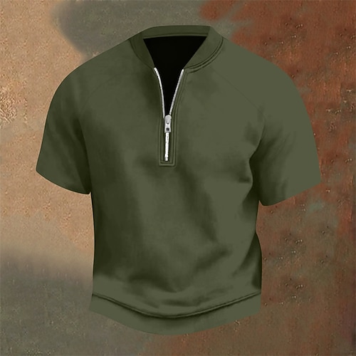 Per uomo Polo Polo con zip a un quarto Casuale Sportivo Bavero Zip a un quarto Manica Corta Moda Essenziale Semplice Zip a un quarto Estate Primavera Vestibilità standard Esercito verde Vinaccia Nero