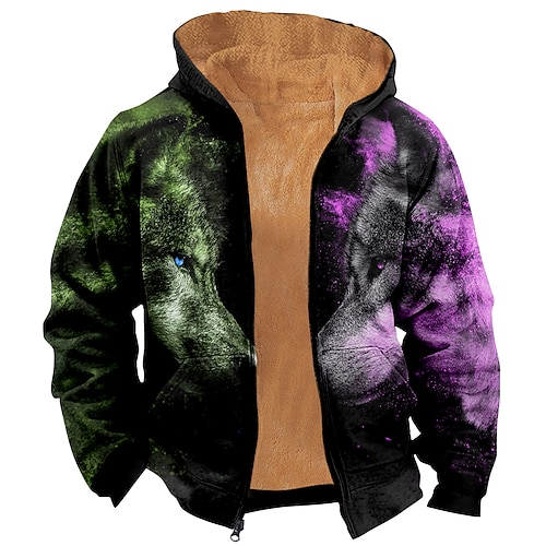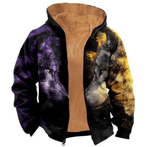 Per uomo Lupo Pile Felpa con Cappuccio Felpa Moda Quotidiano Semplice Casual Girocollo All'aperto Arrampicata Giallo Rosso Viola Oro Con zip Autunno Inverno progettista S M L XL 2XL 3XL