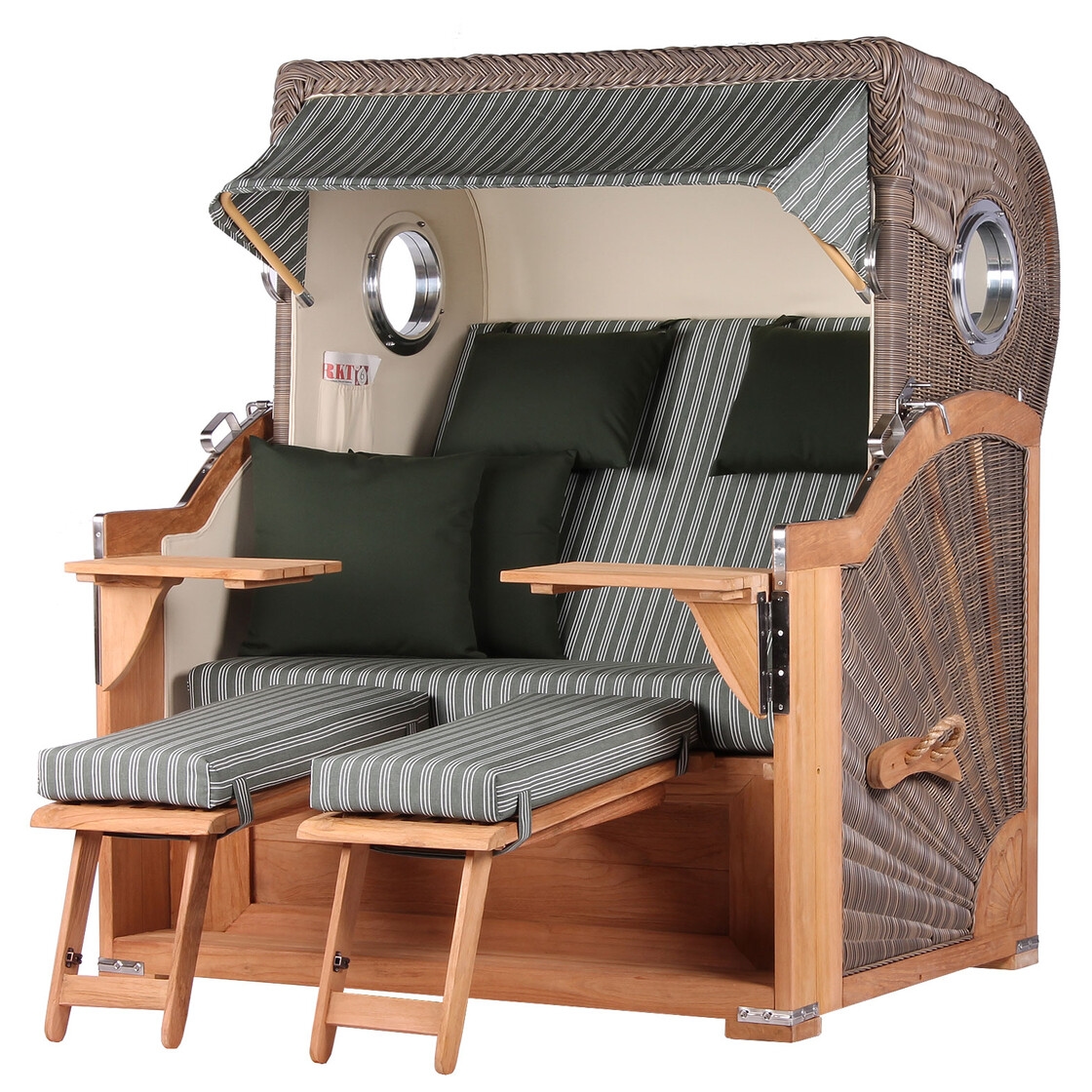Mr. Deko Strandkorb Komplettset - bene living - Königssee Teak Bullauge - PE grau - Modell 504 - inkl. Liftersystem