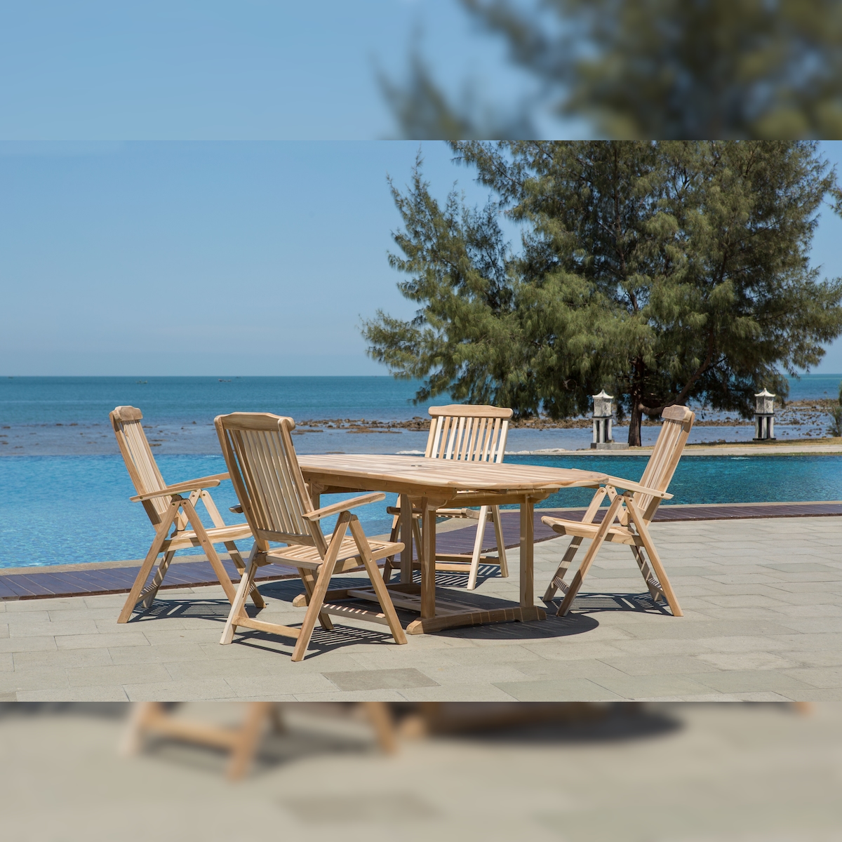 Möbilia Sitzgruppe 5-tlg aus Teak-Holz | 4 Armlehnstühle, 1 Tisch ausziehbar | B 0 x T 0 x H 0 cm | natur | 11020024 | Serie GARTEN