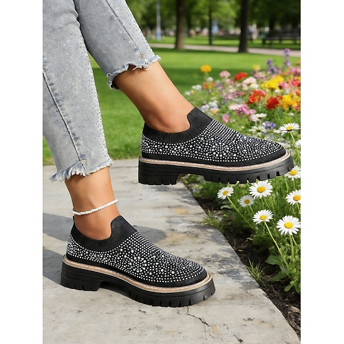 scarpe slip-on da donna in maglia rosa con dettagli in strass e suola spessa, comode scarpe casual da indossare tutti i giorni, per passeggiate, viaggi, shopping e gite del fine settimana