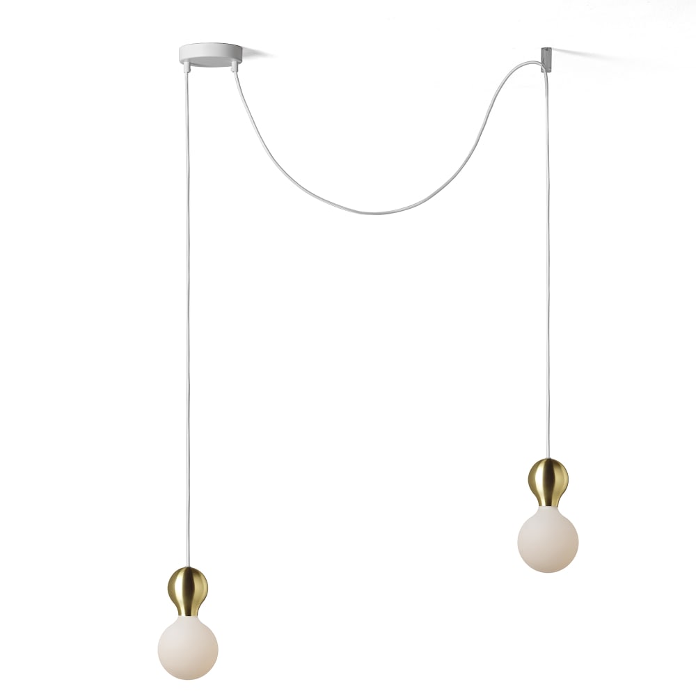 Lampada a sospensione bianco/oro con 2 lampadine porcellana