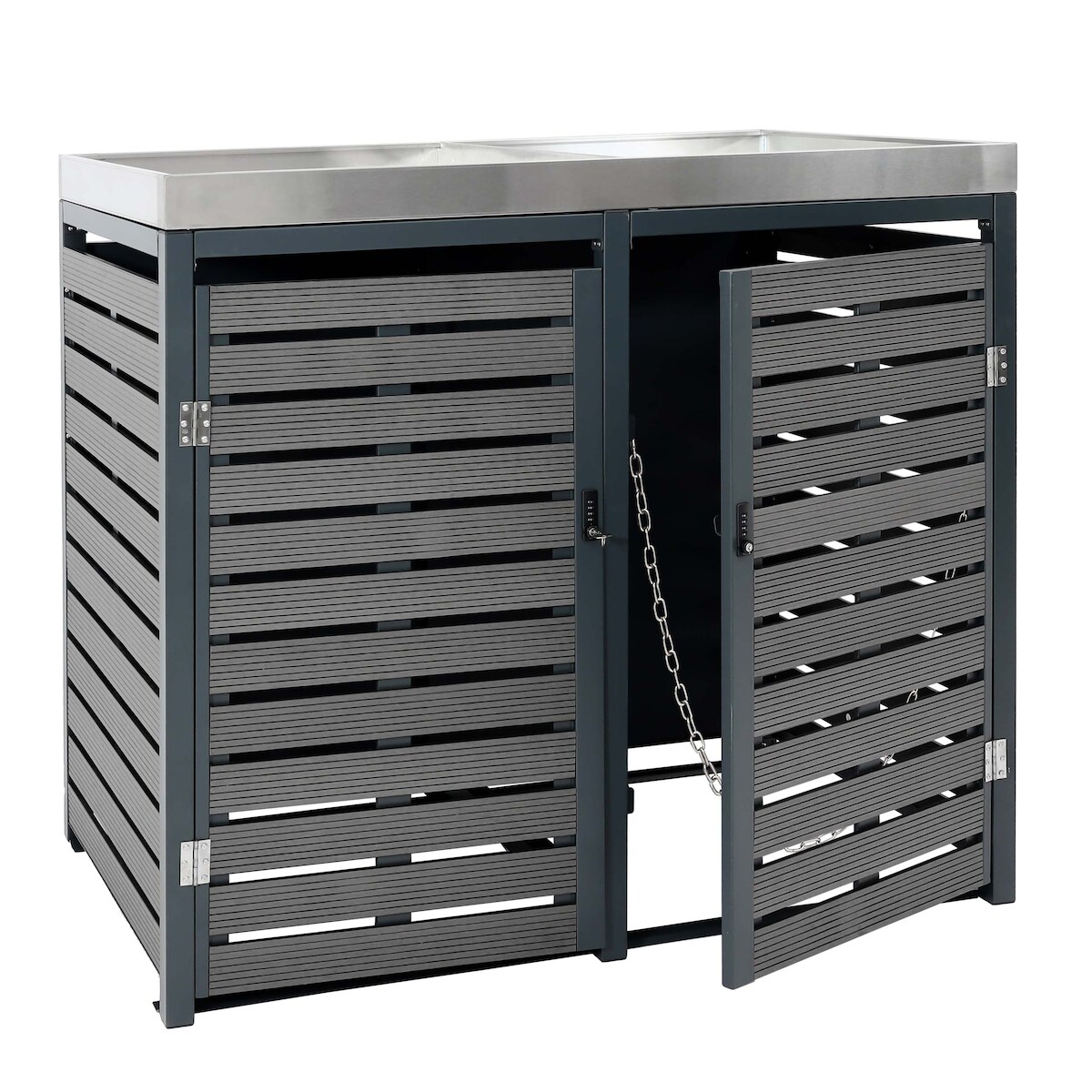 Mendler Poly-Rattan Kissenbox HWC-D88, Gartentruhe Auflagenbox Truhe ~ Basic grau, 51x115x59cm 250l