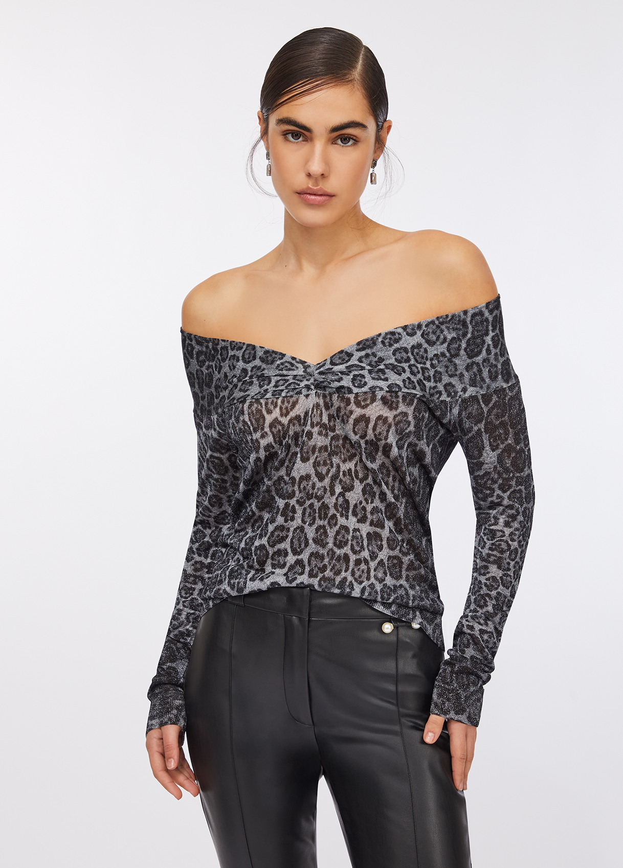 Liu Jo Pull À Encolure En V, Animalier Gris, XS