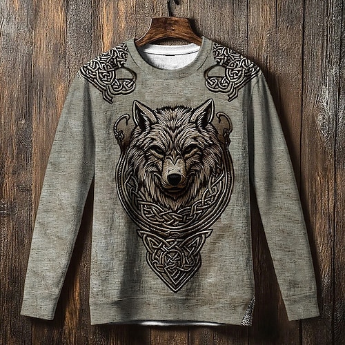 Per uomo Maglia Nero Blu Grigio Girocollo Lupo Nodo celtico Stampato Casuale Quotidiano Ferie Vintage Vichingo Autunno Inverno Abbigliamento Felpe con cappuccio Felpe