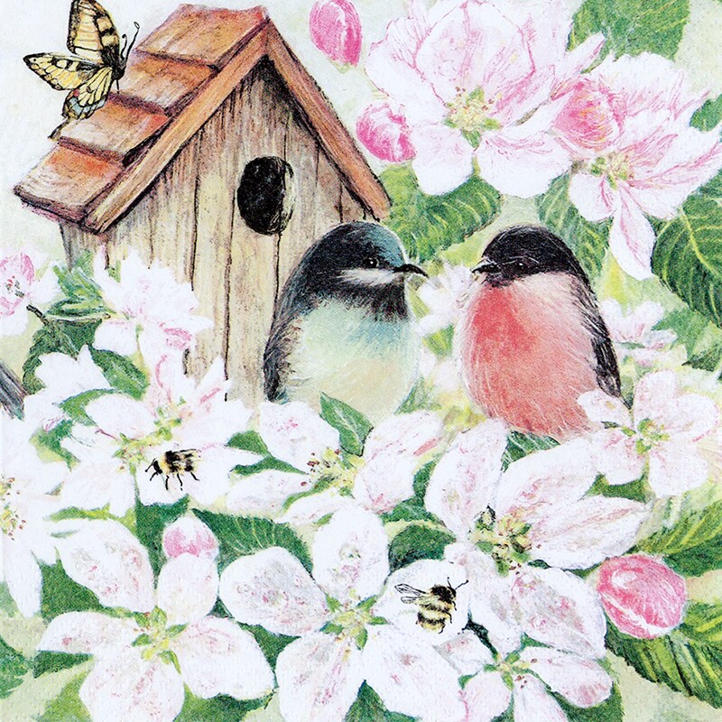 Home Fashion, Birds and Blossom, Lunch-Servietten aufgefaltetes Maß 33 cm x 33 cm, im Viertelfalz, 20 Stück pro Pack