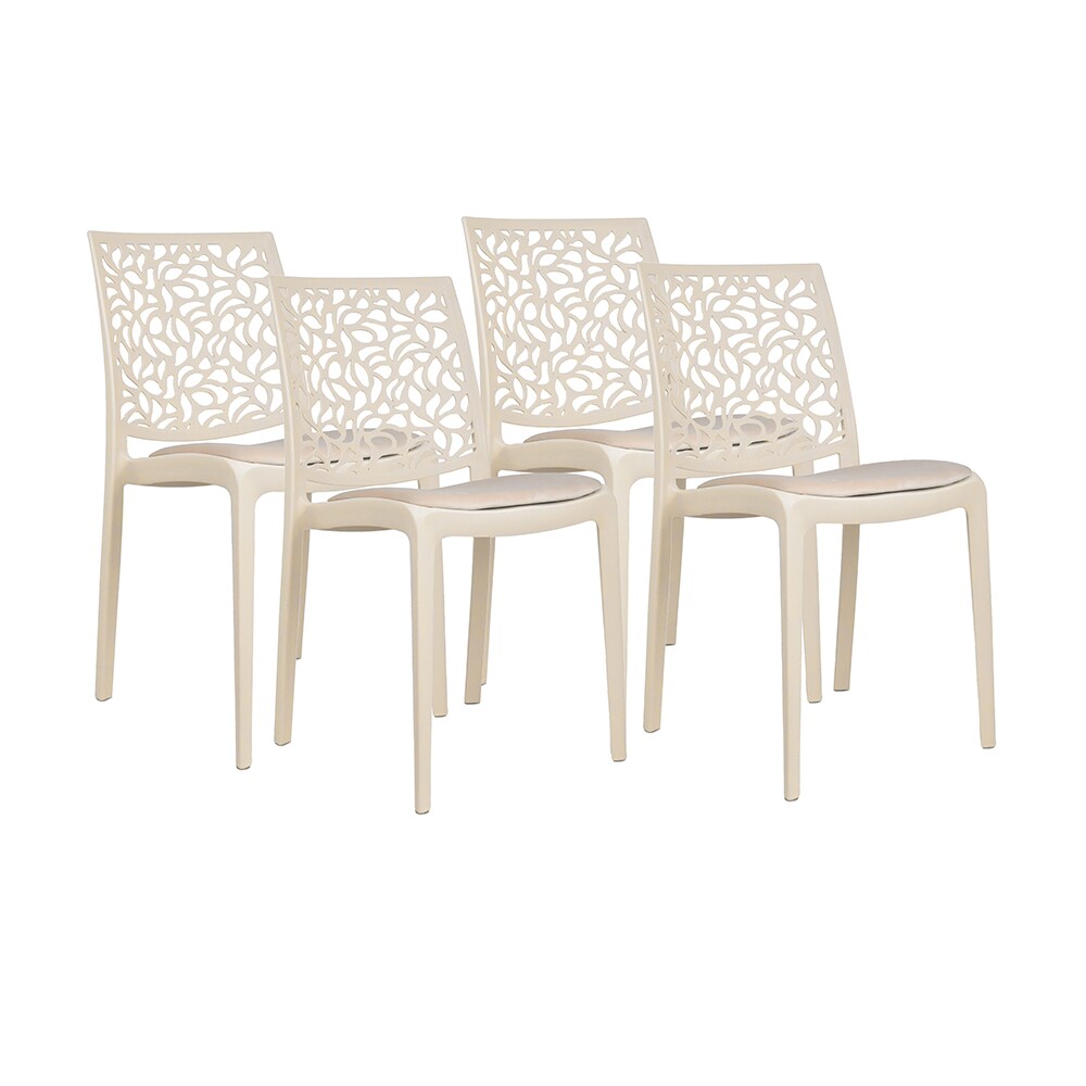 RATTATAN Set aus 4 Stühlen aus Polypropylen mit Glasfaser und Sitzkissen,stapelbar für Küche,Esszimmer,Bar und Restaurant – Anna – Creme/Creme