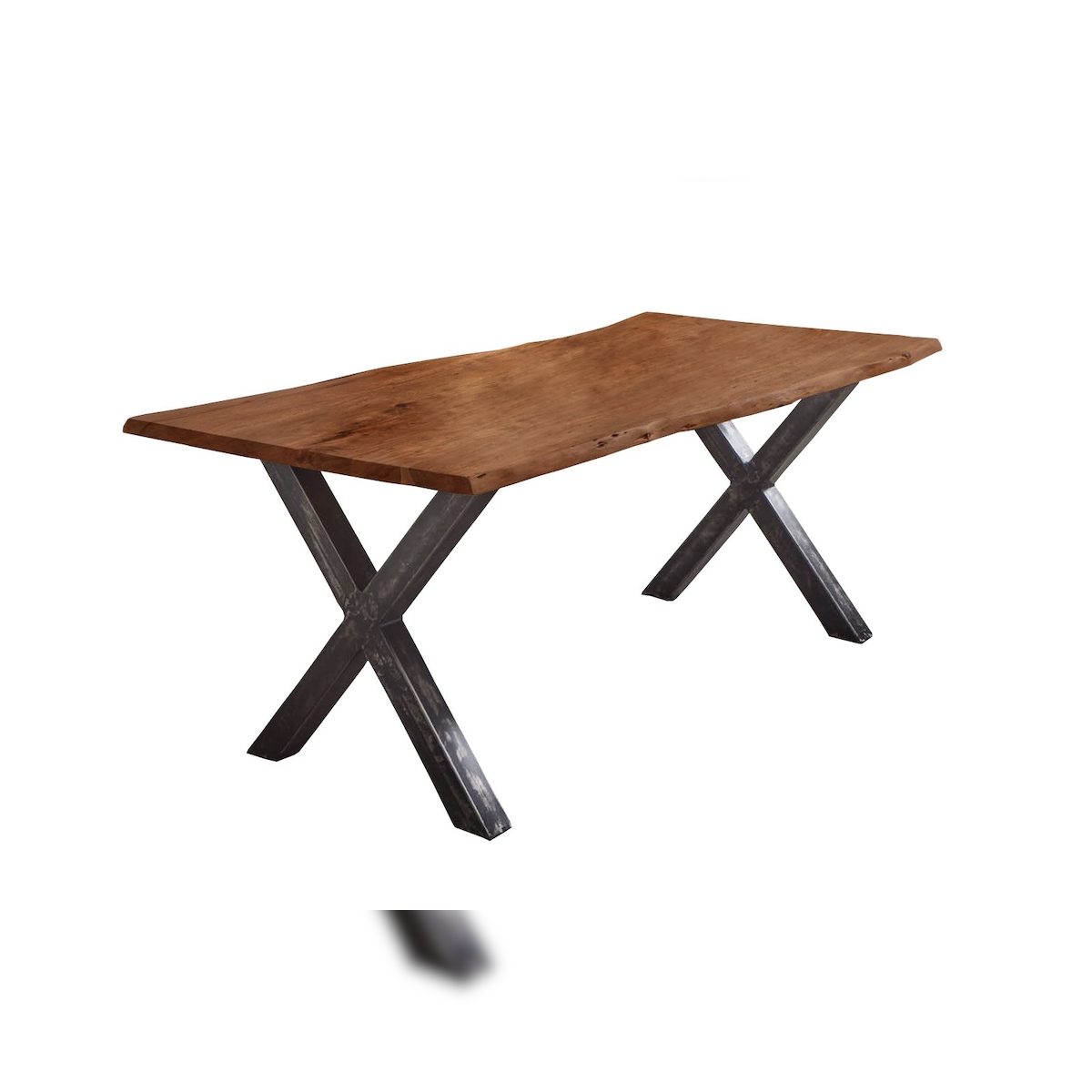 Esstisch Baumkante Akazie nussbaumfarben 160 x 85 cm Vintage X-Gestell schwarz FREDERIK