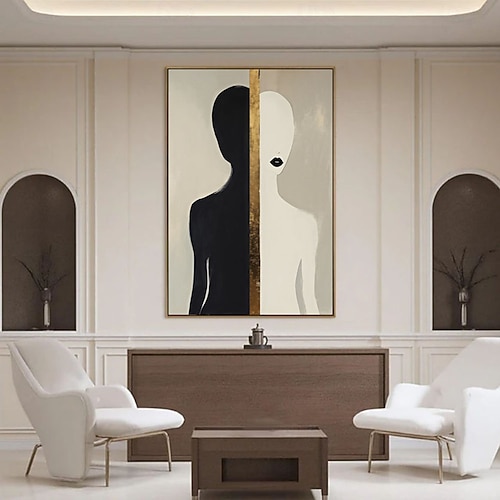 moderno ritratto astratto dipinto a olio figura minimalista arte su tela contemporaneo nero bianco oro arte murale dipinto personalizzato arredamento soggiorno