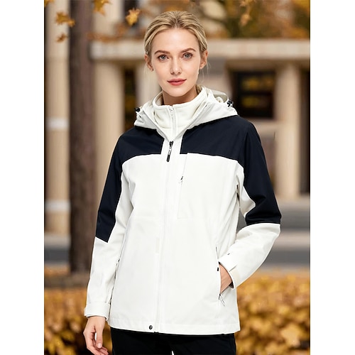 Per donna Giacca softshell Giacca da escursionismo Inverno All'aperto Blocco di colori Calore Termico Antivento Resistente all'Acqua Giacca 3-in-1 Giacca Invernale Giacche in pile Viaggio Nero Avorio