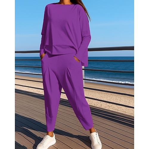 Per donna Pantaloni da Tuta Tuta da 2 pezzi Abbigliamento sportivo Tasca Tinta unita Completo Abbigliamento Autunno Nero Bianco All'aperto Viaggio Sportivo cascante Manica Lunga Sport Abbigliamento
