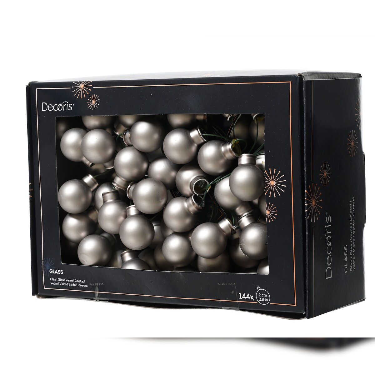 144 Glaskugeln am Draht 2cm Weihnachtskugeln Spiegelbeeren - kleine Dekokugeln Christbaumschmuck Weihnachtsdeko Zart Grau matt