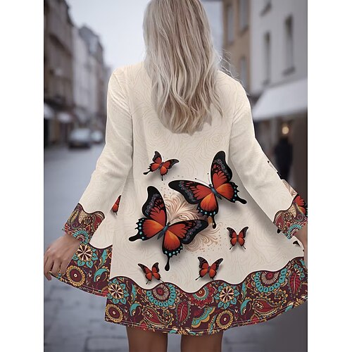 Per donna Cappotto Invernale Trench Leggero Confortevole Stampato Aperturaanteriore Vintage Moda Casual Boho Vintage Geometrico Vacanza Casuale Lungo Senza colletto Vestibilità regolare Manica Lunga