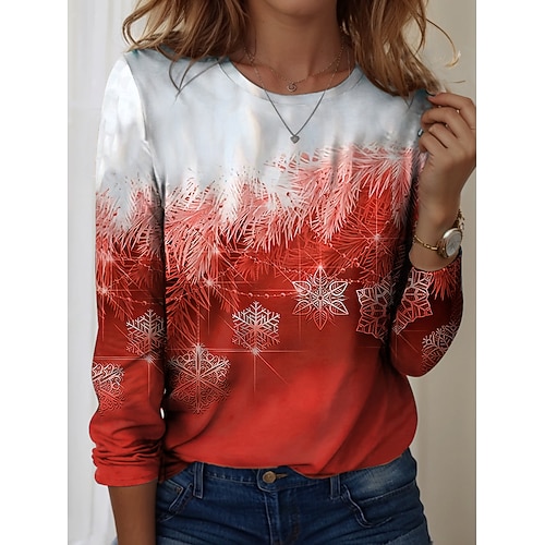 Per donna Maglietta Ombre Grafico Fiocco di neve Vintage Moda Elegante Manica Lunga Girocollo Top Regolari Quotidiano Weekend Stampato Blu Giallo Rosso Viola Verde Primavera Autunno Inverno