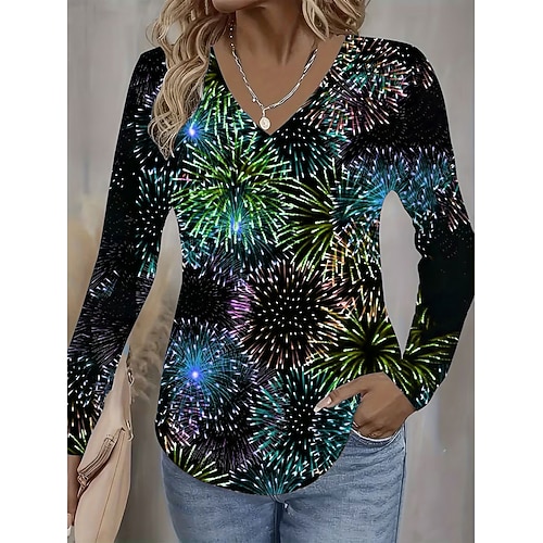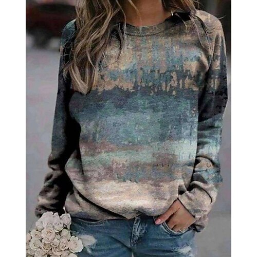 Per donna Maglietta Ombre Grafico Vintage Elegante Classico Manica Lunga Scollo a V Top Regolari Quotidiano Stampato Blu Viola Arancione Primavera Autunno Inverno