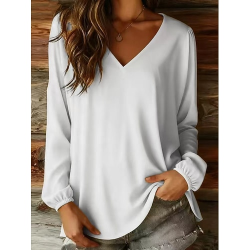 Per donna Blusa Semplice Vintage Elegante Moderno Manica Lunga Scollo a V Top Regolari Quotidiano Ferie Uscire Blu Bianco Giallo Rosa Rosso Estate Primavera Autunno