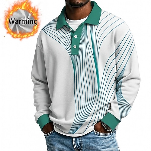 Per uomo Geometrico Linea Polo Camicie termiche Manica Lunga Magliette polo Bavero Casual Athleisure Ferie Abbigliamento quotidiano Stampa 3D Primavera Autunno Inverno Blu Nero Giallo