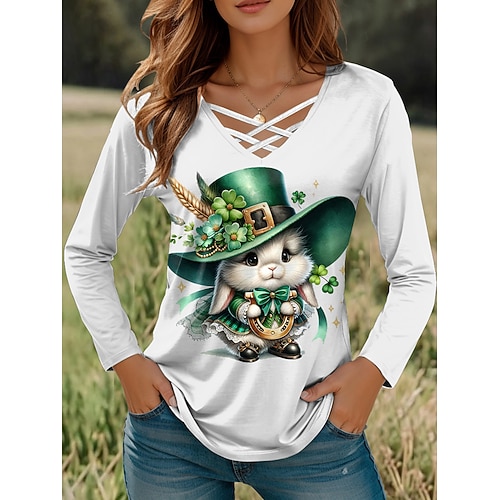 Maglietta da donna per il giorno di San Patrizio quotidiana casual a manica lunga bianca primavera autunno