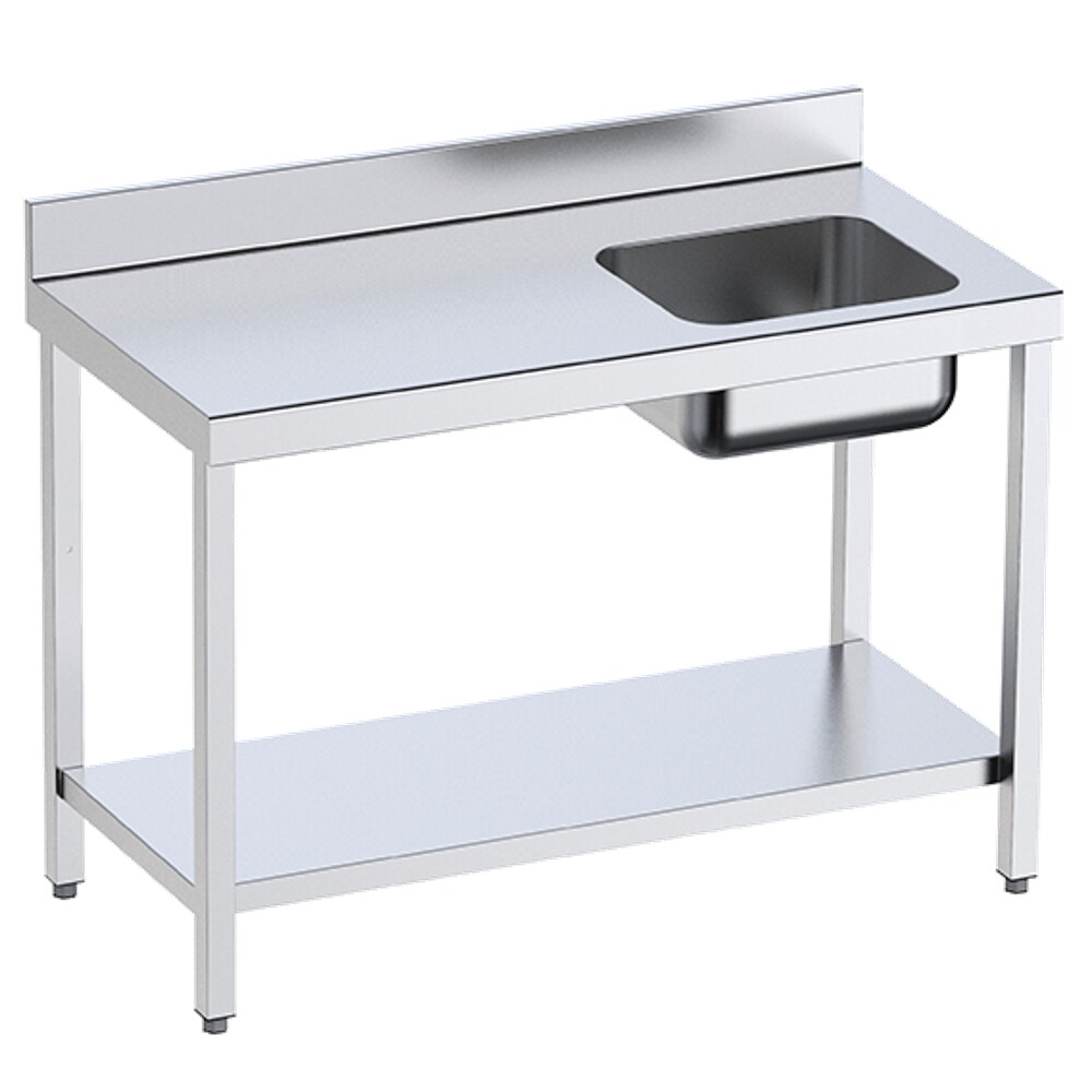 Chef tisch mit 1 becken rechts 1 regal - 2000x700x850 mm - 1M0207ED Eurast